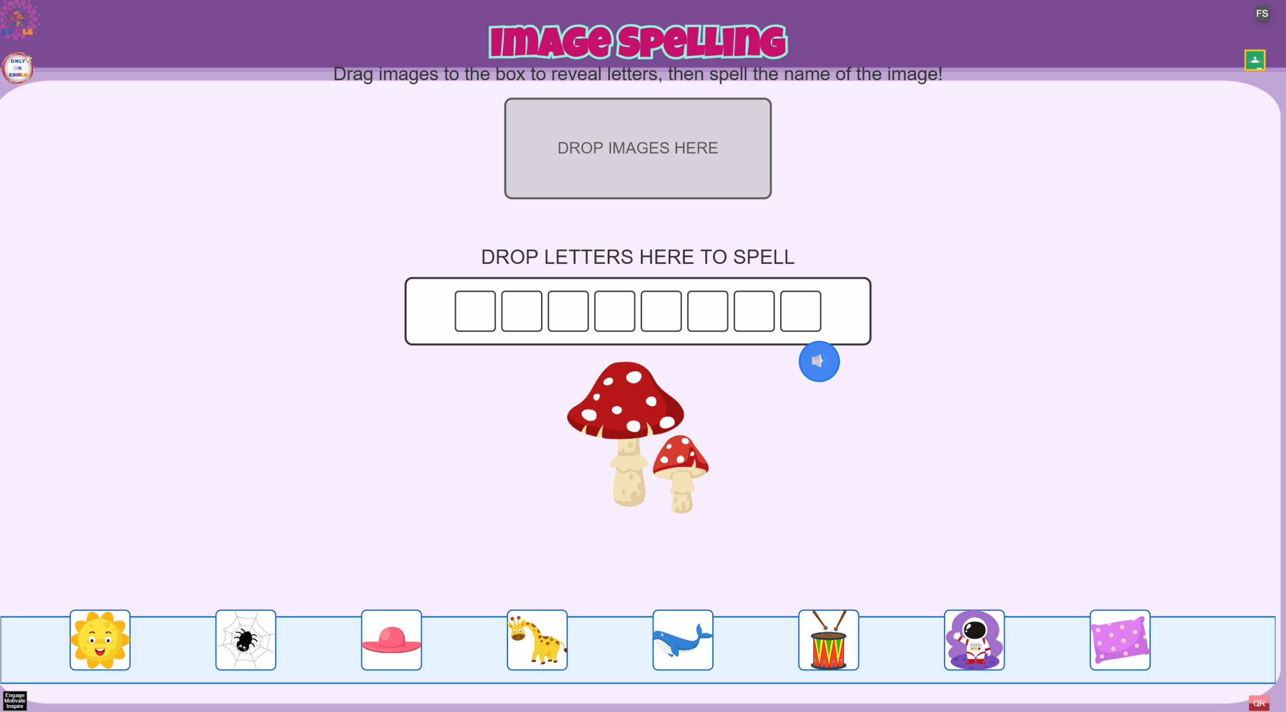 Please launch game for instructions. This is a spelling game where kids learn to spell words by using other words derived from images.