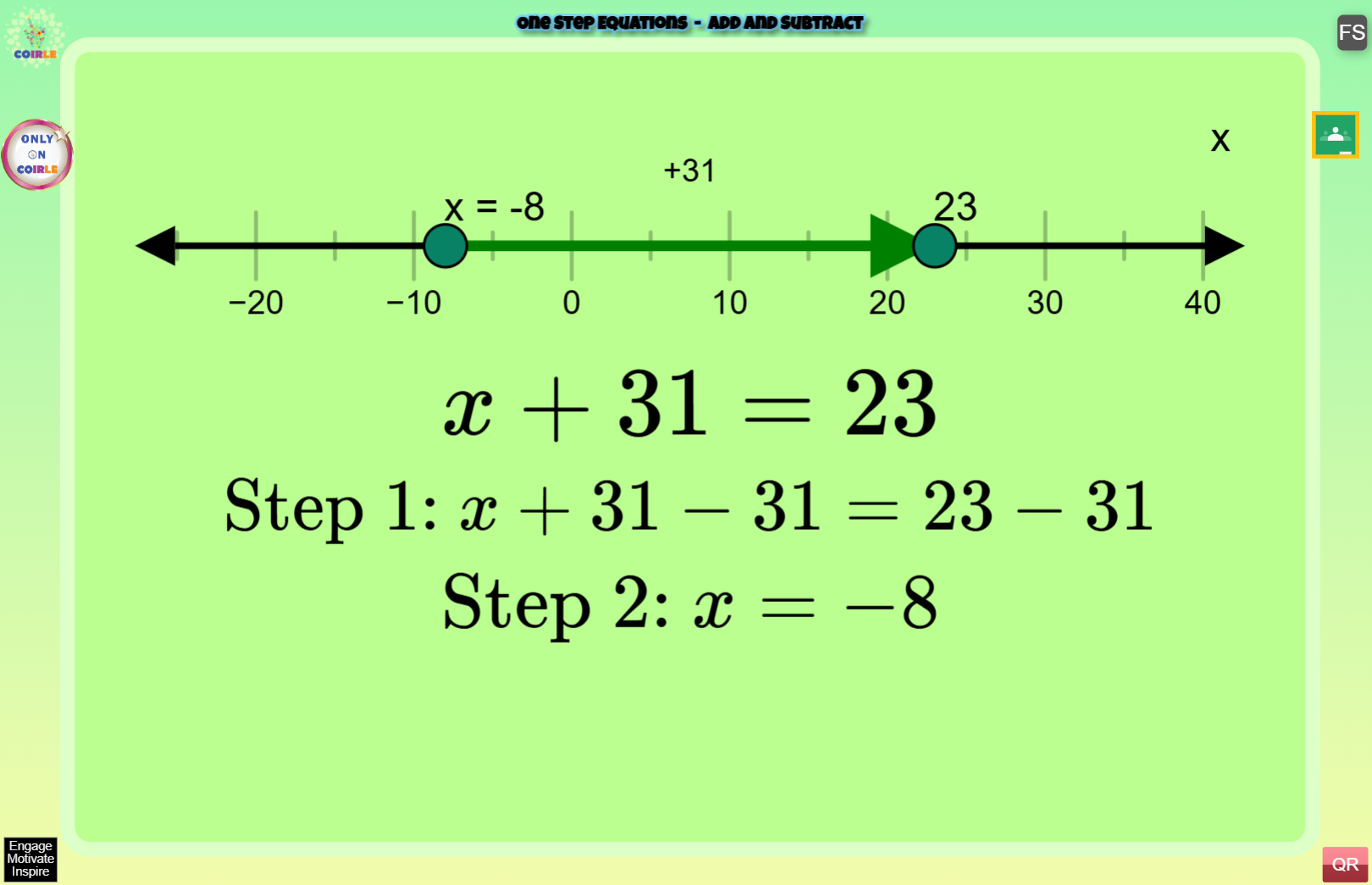 Mobile One Step Equations – Add/Subtract