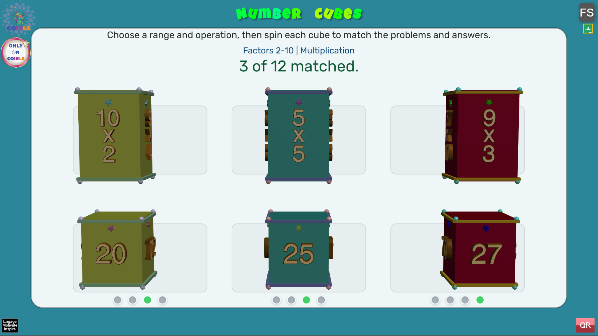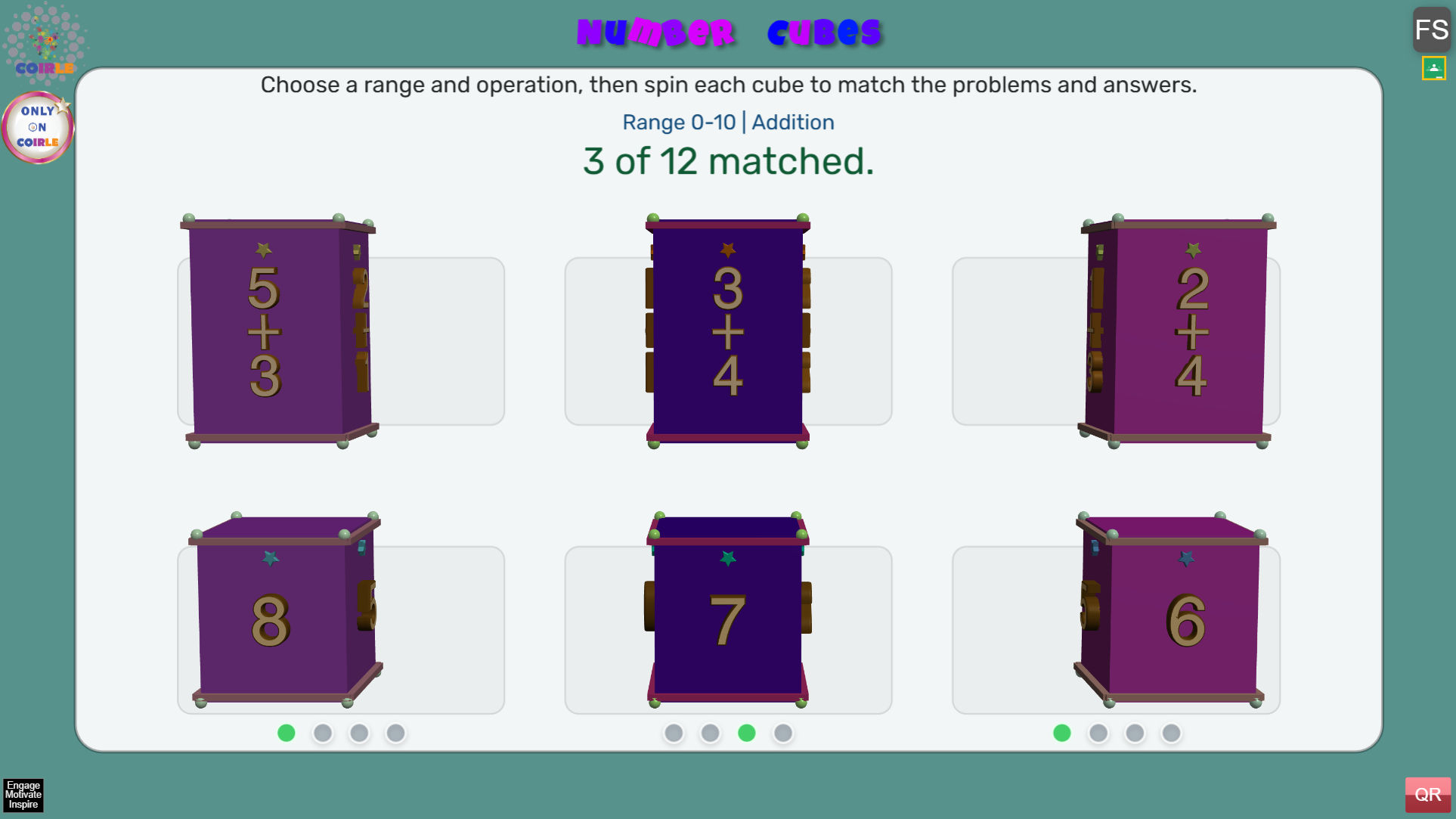 - Rotate the top cubes to find a math problem.