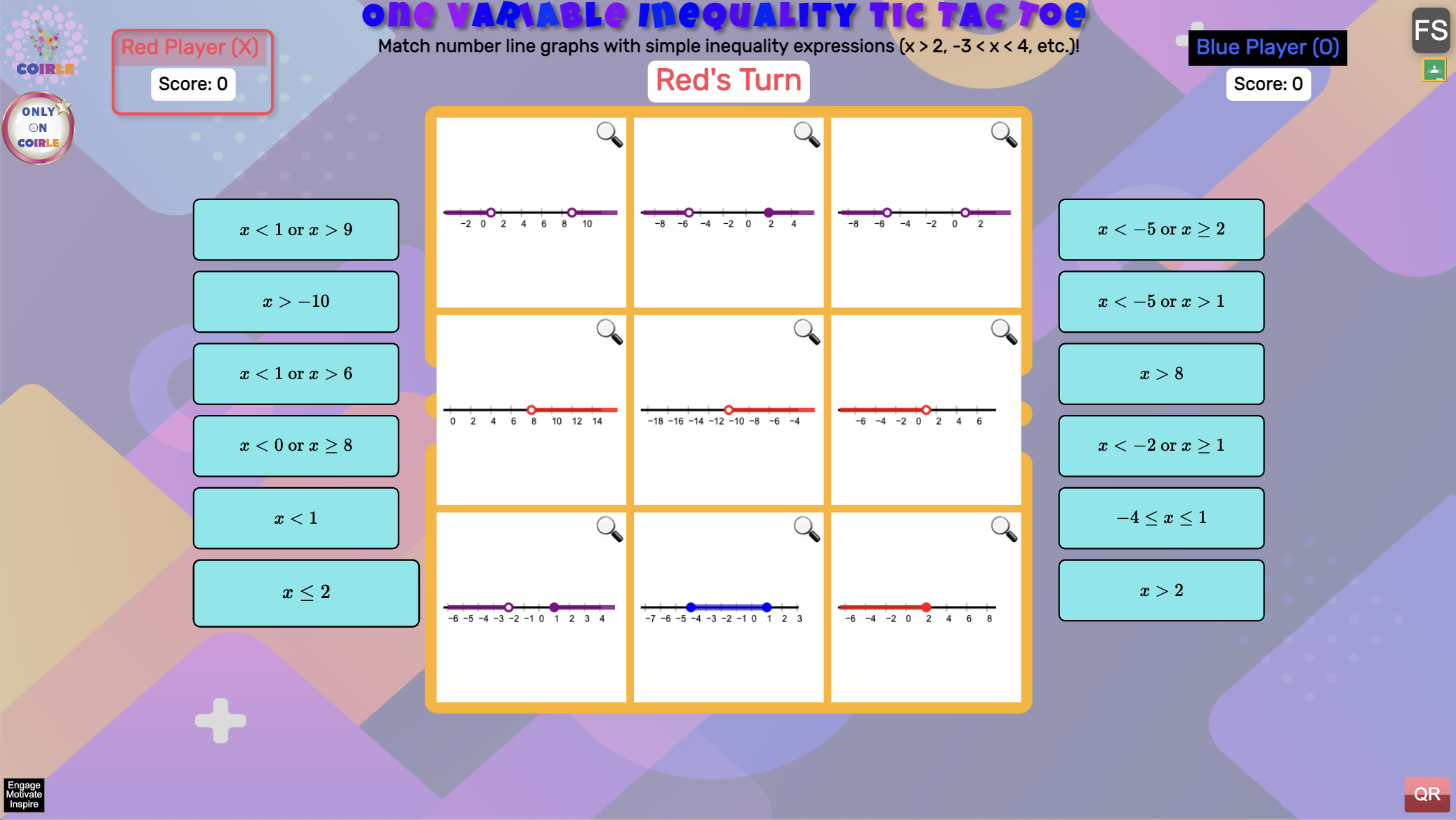 One Variable Inequalities Tic-Tac-Toe